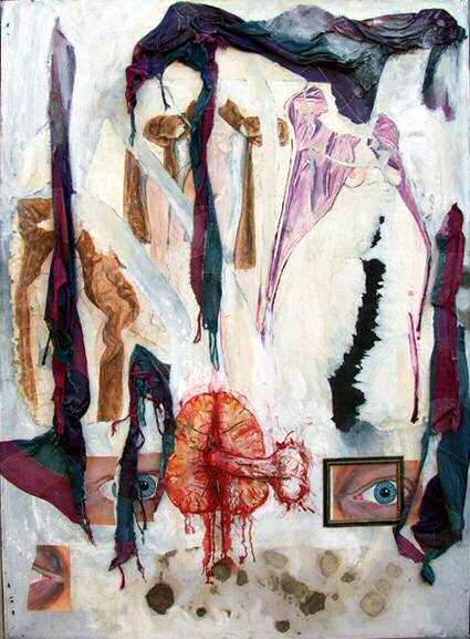 Mischtechnik auf Leinwand mit Stoffapplikationen